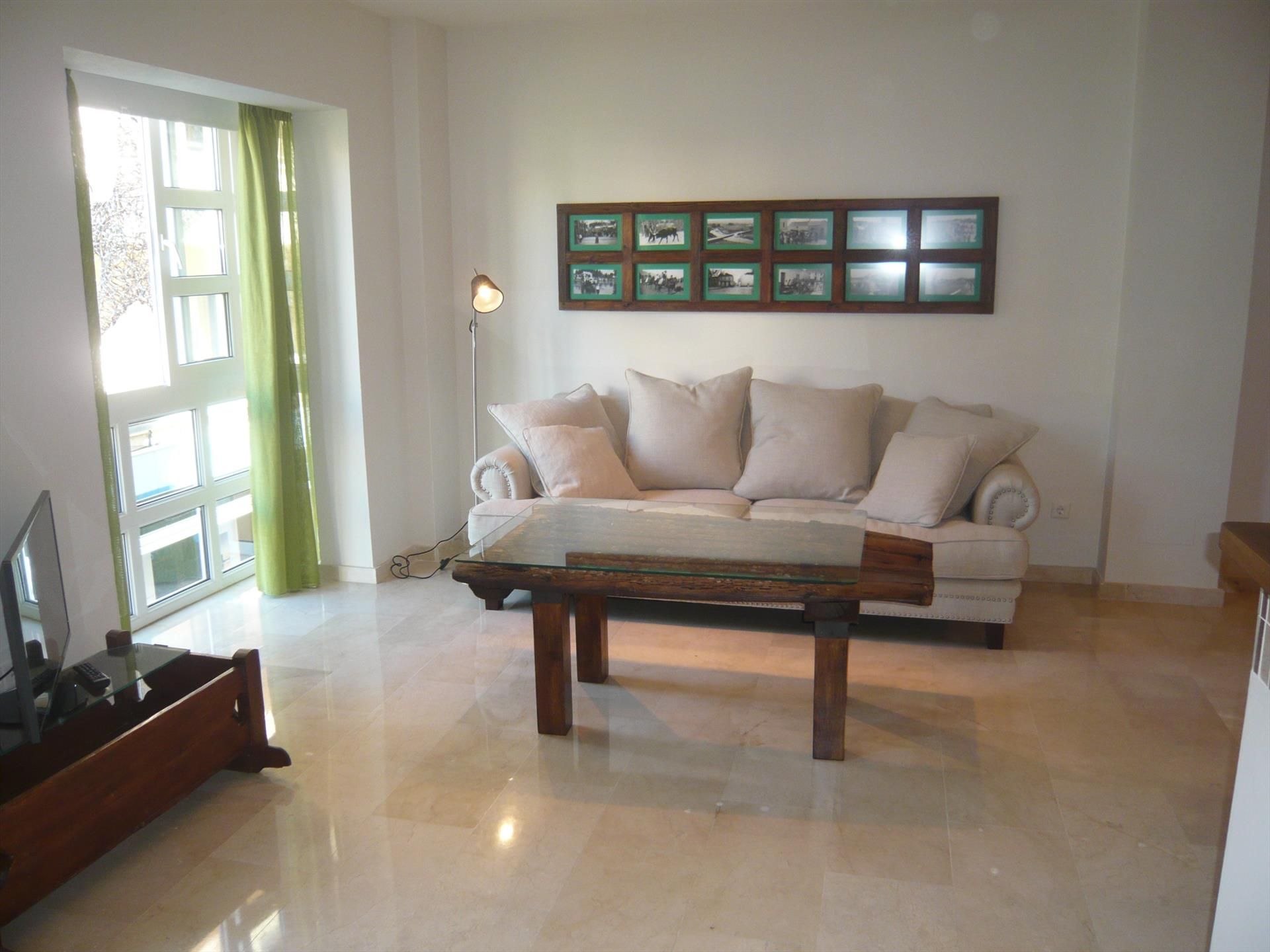 There is a spacious double bedroom located at the back so therefore it is quiet and no noise from the square or the street. Also the bathroom is located between the living room and the bedroom.