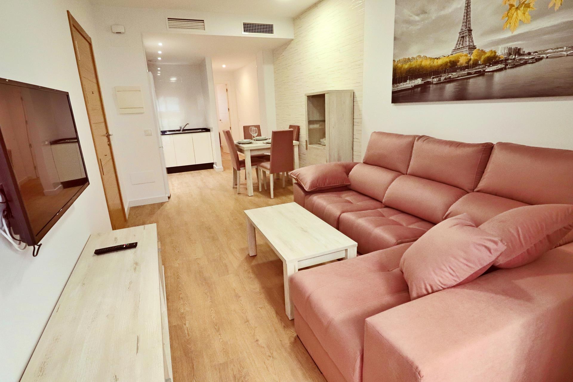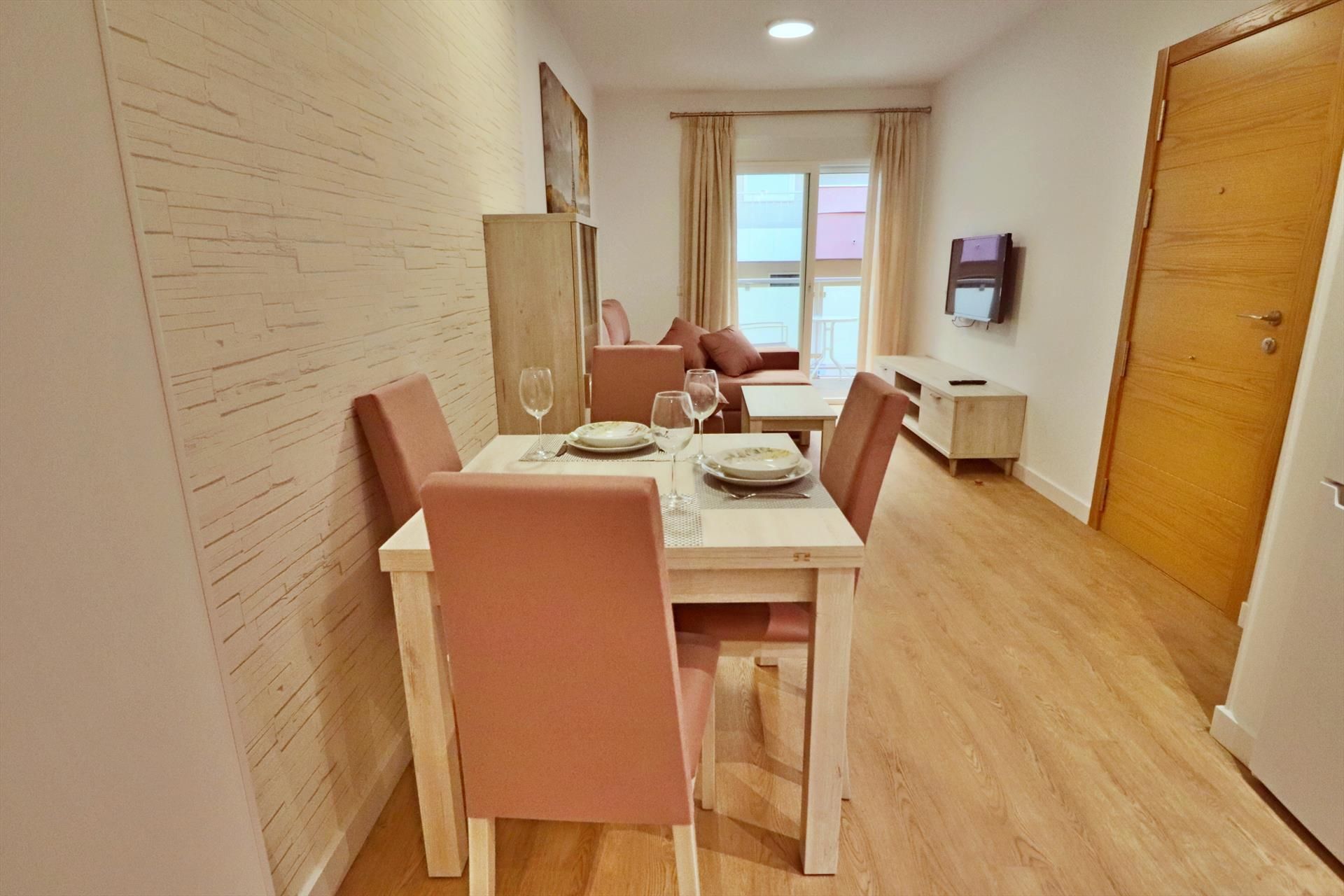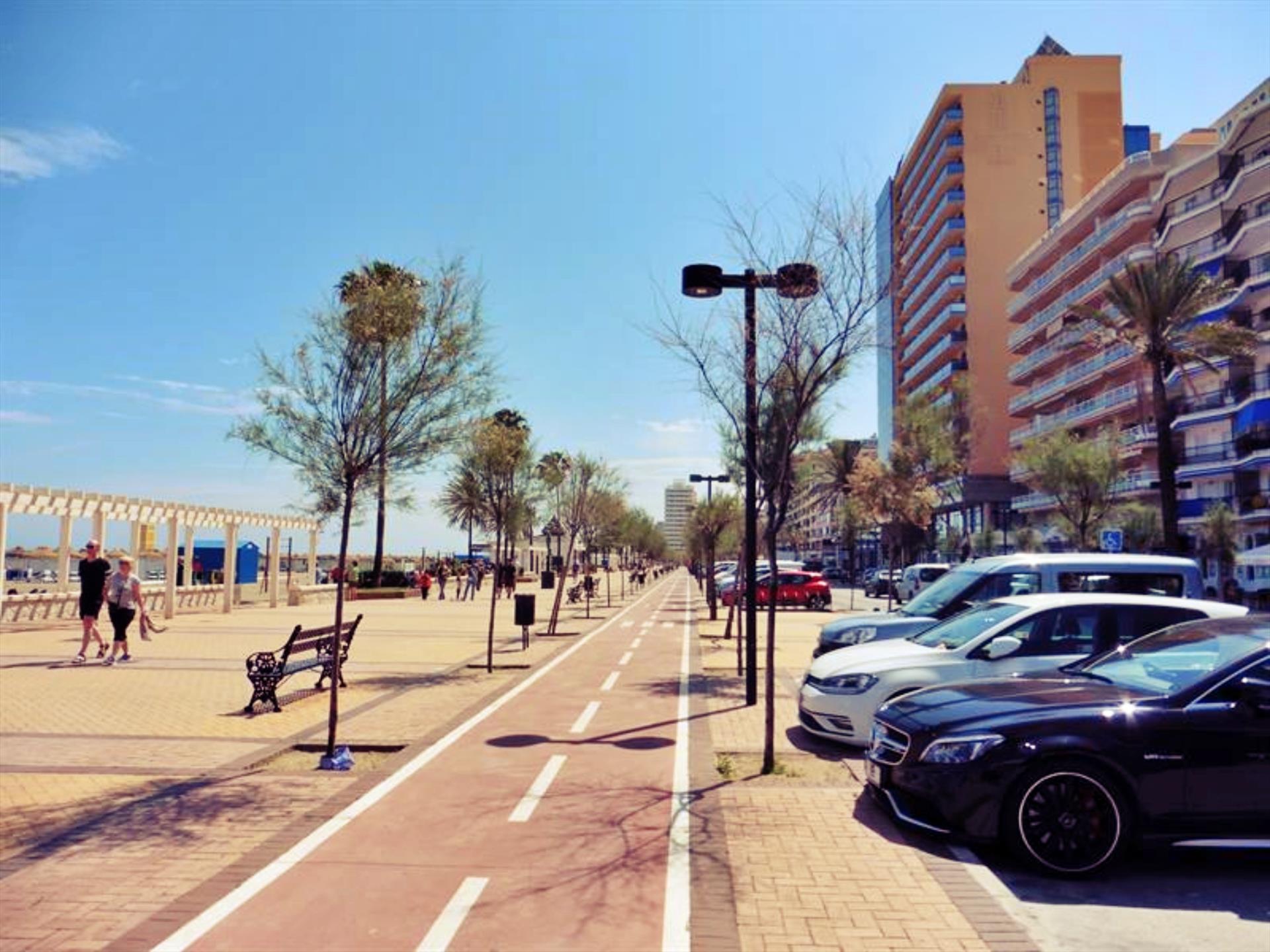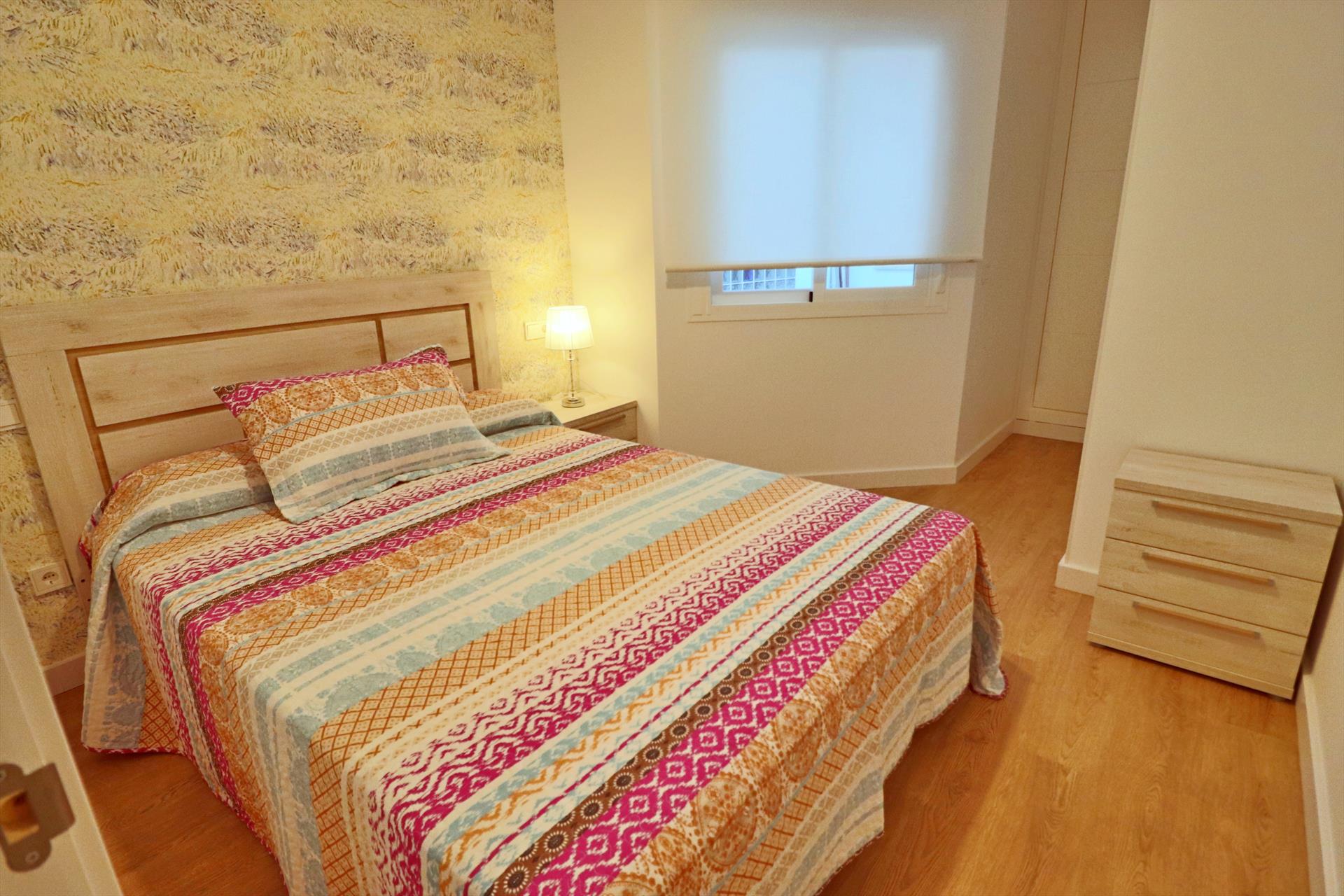 This beautiful and modern 1 bedroom apartment has been built and finished to a very high standard. The building entrance has a wide sloped hall way leading to the lift. The apartment is located on the first floor. The front door opens into a good size, bright open plan living area. There is a fully equipped and quality designed kitchen with full oven, hob, microwave, fridge/freezer and all cooking equipment. There is a Dolce Gusto coffee machine, electric kettle and toaster.The corridor leads down to the back of the apartment. The first on the left is a quality bathroom with walk-in shower. Then next to the bathroom is the main bedroom has been tastefully decorated to give a relaxing feel. There is a double bed with side table and lamps and a large built in wardrobes.This apartment has a nice south facing balcony which over looks a great Spanish style street. The location of this apartment is excellent! Only 75metres from the beach, 100 metres from the high street shops and surrounded by fabulous bars and restaurants.