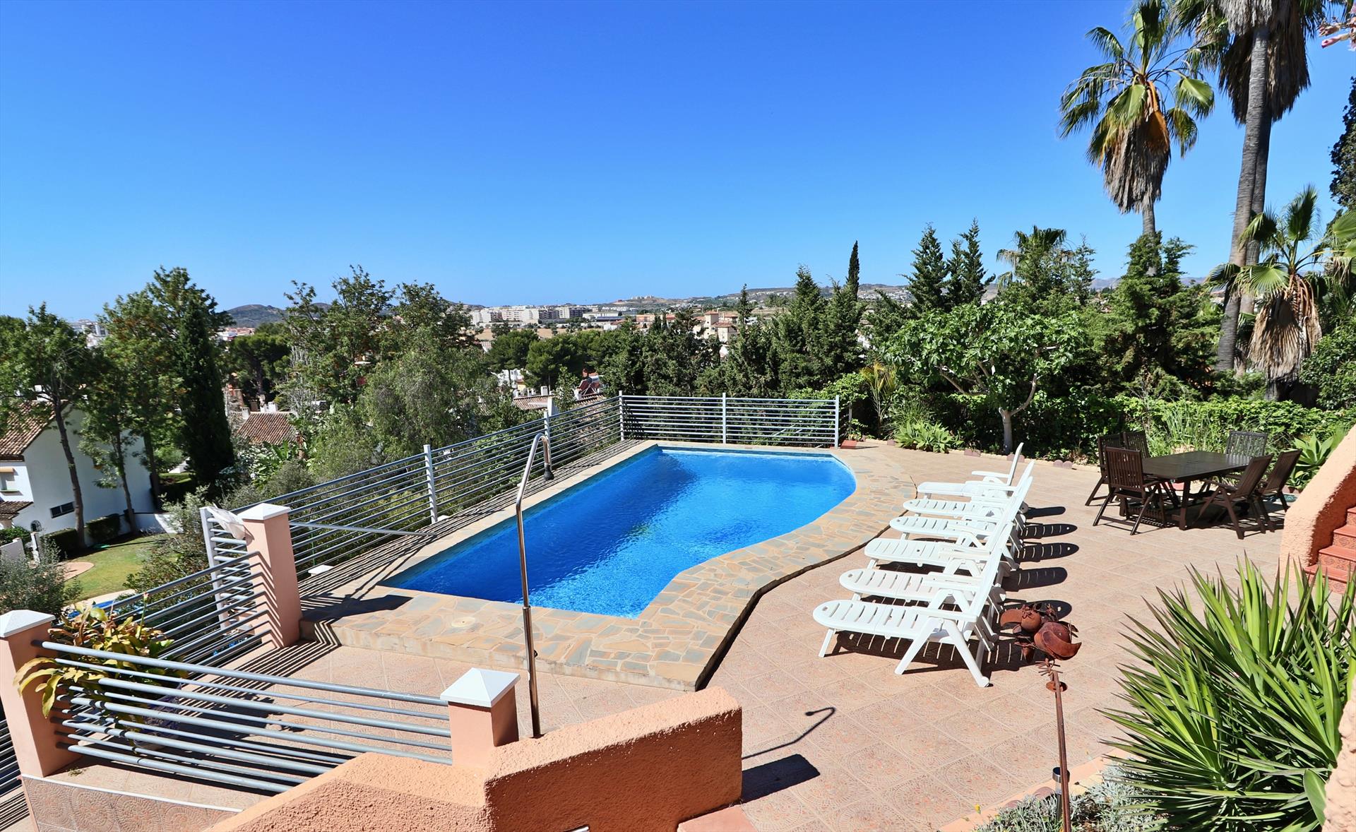 This holiday villa is situated just on the outskirts of the popular town of Fuengirola. Fuengirola centre is easily accessible from this villa and a car is not necessary as it is an easy 25 minutes’ walk into Fuengirola town centre and to the beach. Plus there is an excellent bus service and the bus stop is less than 5 minutes’ walk from this property.