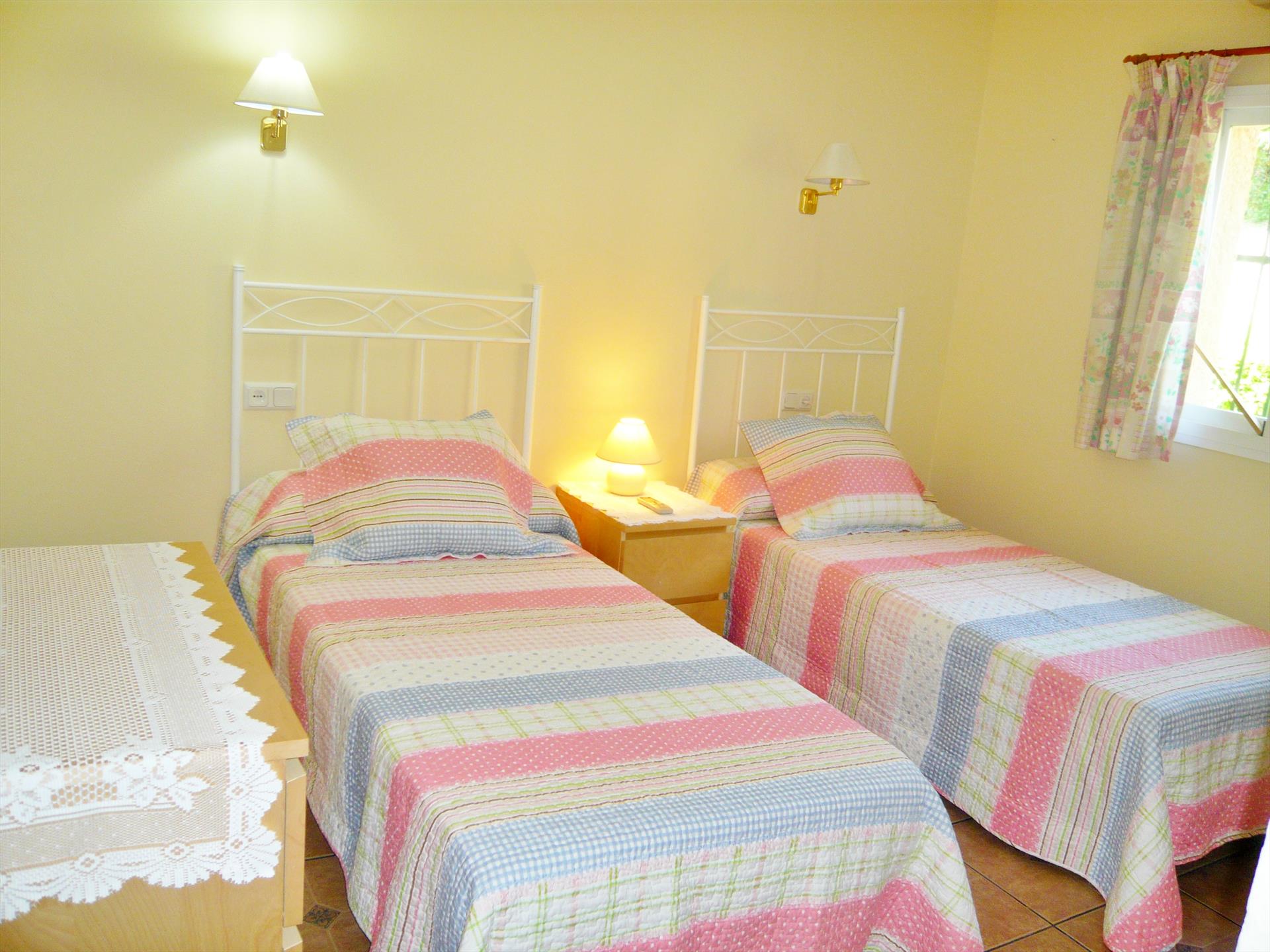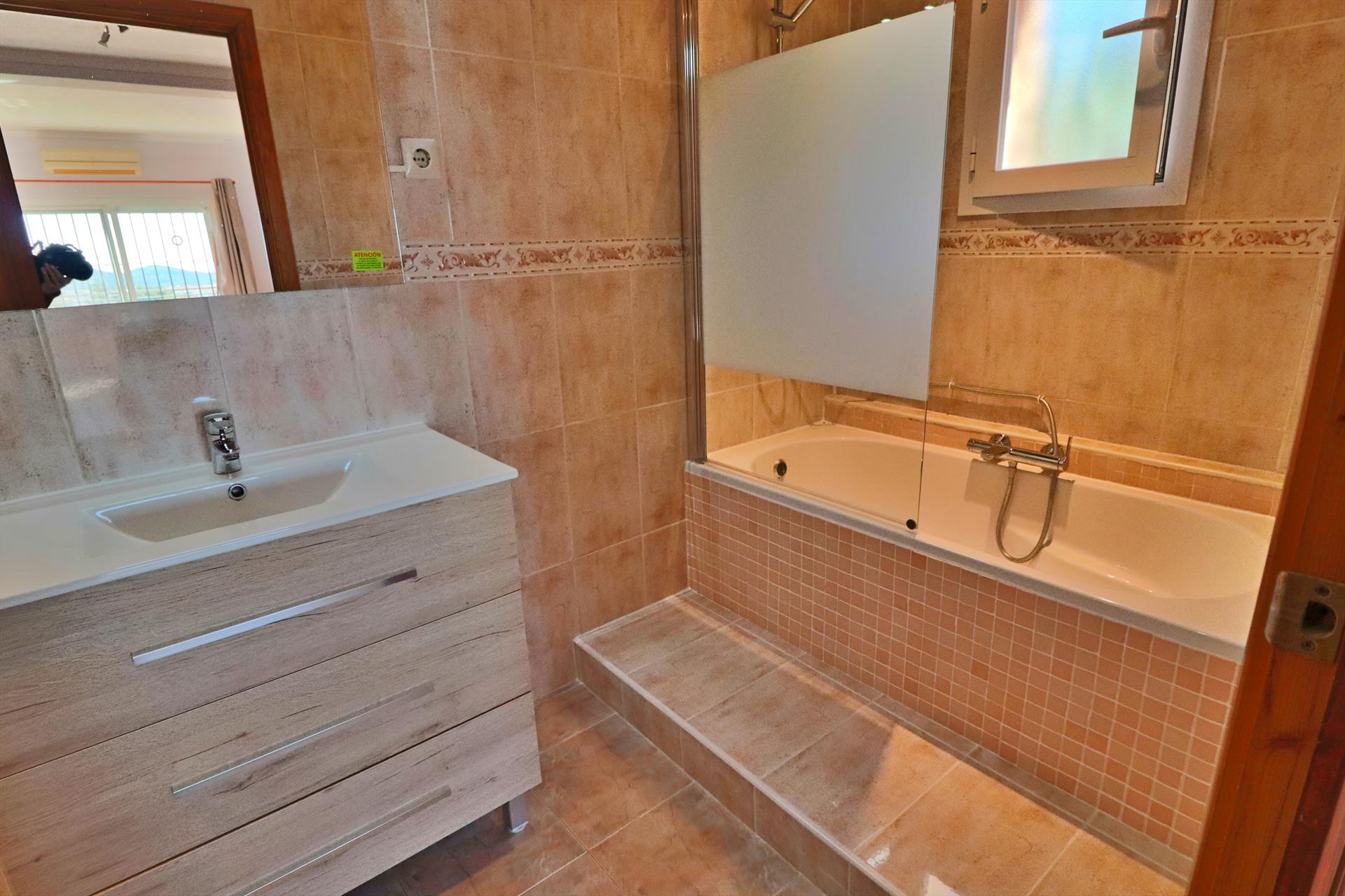 The bedrooms in this villa are light and spacious. There are 3 bedrooms plus the area off the kitchen has been set up as an extra bedroom with twin beds. The master suite is very spacious with the additional dressing area leading into the en suite bathroom. There are two very good size twin bedrooms. The villa has 2 full bathrooms and 1 separate toilet.